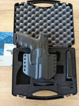 Prodám pistoli koupenou v roce 2022, vystříleno cca 1500 originál S&B, ve velmi pěkném stavu bez škrábanců, s kufříkem, dva zásobníky, výměnné střenky - boky a hřbet (velikosti S, M, L), spolehlivá, přidám kydexové pouzdro.