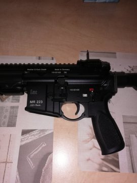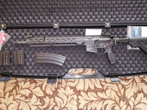 Prodám Hk mr 223 16,5 palce (long) dlouhé předpažbí nástřel cca 200 ks ke zbrani 2x orig. 10r zásobník a 1x 30r.