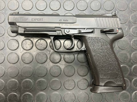 Pistole samonabíjecí výrobce HK model USP Expert v ráži .45 Auto. Ke zbrani je jeden zásobník. Zbraň je v perfektním technickém stavu s minimálním nástřelem. komisní prodej, platba možná pouze v hotovosti. Zbraň kategorie R3.