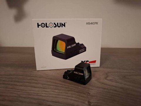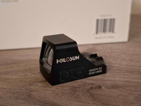 Prodám pistolový kolimátor Holosun HS407K X2. Kompletní balení, plně funkční. K vidění v Brně. HS407K X2 je určen výhradně pro pistole. Tečka o velikosti 6 MOA zaručí rychlé zamíření. Velmi malá velikost vhodná pro zbraně s přípravou na kolimátor. Bez paralaxy s neomezeným očním reliéfem. Baterie je uložena z boku v těle kolimátoru, disponuje funkcí probuzení pohybem.
