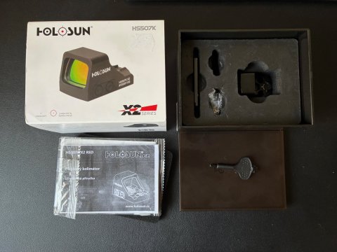 Otevřený micro kolimátor Holosun HS507K X2, občas nošeno, stříleno málo. Komplet balení. Praha 6.