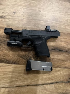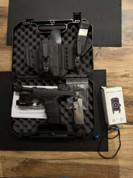 Prodávám z důvodu nevyužití. Zbraň má nastříleno 150 ran. Kydexové pouzdro děláno na míru od firmy OnGear. Ke zbrani jsou 3 zásobníky - 11,13,15 ran. Na zbrani je svítilna Olight PL-Mini 2 Valkyrie, nikdy s ní nebyly žádné problémy, svíti skvěle. Na pažbě gumový návlek Hogue grip, lze snadno sundat. Kolimátor Vector optics Frenzy-S 1x17x24 se zelenou tečkou není v ceně - nechám za 1000kč. Původní cena 2800). - Pozor, není nastřelený! Na ceně jsem ochoten se domluvit. Předání v okolí Ostravy.