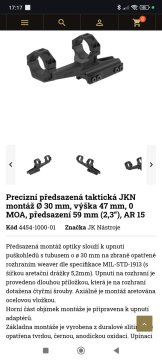 Dobrý den, prodám jednodílnou montáž jkn, montáž byla namontována a vystřeleno 20 ran, bohužel je na mou kulovnicí s nočním viděním moc vysoká, špatný kup. Precizní předsazená taktická JKN montáž Ø 30 mm, výška 47 mm, 0 MOA, předsazení 59 mm (2,3“), AR 15. JK Nástroje Kód 4454-1000-01 Při rychlém jednání sleva.