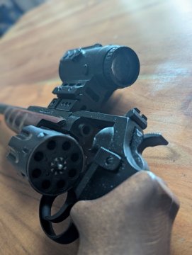 Jsem 1 majitel, vystříleno cca 400 ran. K prodeji revolverová malorážka Kora Brno 20" - 8 nábojů. Samotná zbraň - 14000Kč. Možné koupit jako komplet s optikou Vector Optics 4x24, montážní plošinou,nástavcem na tlumič a textilním obalem za cenu 18000Kč. Velmi přesná, s optikou střelba na 100 m s vysokou přesností. Stěhuji se do zahraničí. Do budoucna nevyužiji. Zbraň kategorie C. V případě zájmu pošlu více fotek.