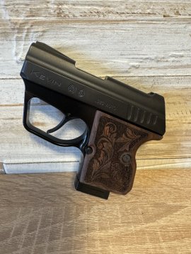 Kevin, vystříleno pouze 20 ran, stav nové zbraně, na zakázku dřevěné gripy+ kožené pouzdro na opasek. Včetně kufru.