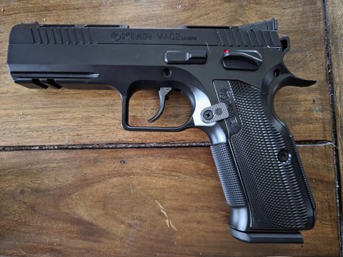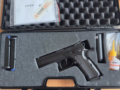 Prodám samonabíjecí pistoli KMR W-02 UMBRA. Ráže 9mm Luger. Nástřel 200ran. Pistole je ve stavu nové zbraně. Silnostěnná hlaveň, originální balení, 3x zásobník,náhradní buffery,pružiny .Špičkové zpracování. Velikostně kjako Shadow 1. Přidám IPSC pouzdro od RH holsters. Nutný ZP a nákupní povolení. Původní cena 53900,-zbraň +2340,- pouzdro.