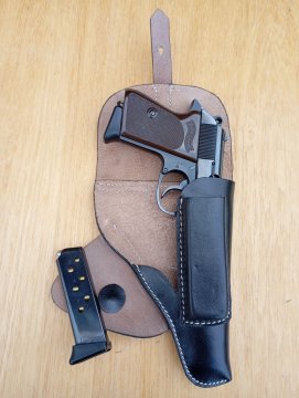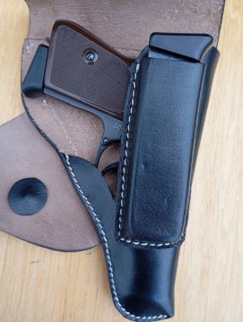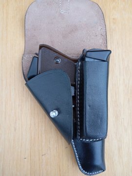 Replika německého černého pouzdra na pistoli Walther PPK vyrobená z pravé kůže. Možno i pro zbraně podobné velikosti ( max. délka zbraně 150 mm ). Do pouzdra nepasují pistole Walther PP, Makarov PM nebo CZ 27/50/70 a podobné, jsou o něco delší. Nové, nepoužité, velmi kvalitní zpracování. Po dohodě mohu zaslat přes balíkovnu do balíkovny ( 50 + dobírka 0), přes balíkovnu na adresu ( 105 + dobírka 19 ), přes zásilkovnu ( 89 + dobírka 26 ), převodem na účet před odesláním bez dobírky nebo osobně.