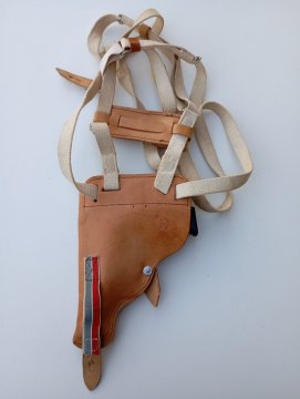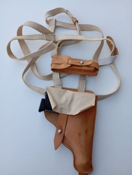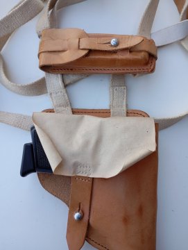 Kožené podpažní pouzdro na pistoli Walther PP zřejmě z roku 1938 ( viz foto ), značené nacistickou orlicí a symbolem Wa A920. Použité, ve velmi pěkném stavu, včetně pouzdra pro náhradní zásobník. Do pouzdra pasují i pistole CZ 27/50/70, Makarov PM nebo zbraně podobného rámu. Po dohodě mohu zaslat přes balíkovnu do balíkovny ( 75 + dobírka 19 ), přes balíkovnu na adresu ( 105 + dobírka 19 ), přes zásilkovnu ( 89 + dobírka 26 ), převodem na účet před odesláním bez dobírky nebo osobně.
