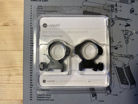 Na prodej úplně nové kroužky Hawke, Precision Steel, 30mm, vysoké, ocelové, Weaver. Nerozbalené.