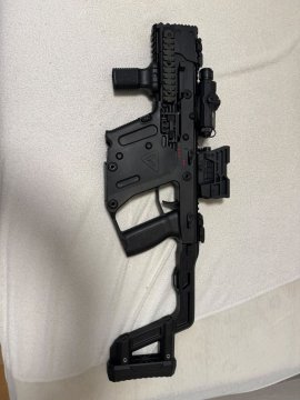 Airsoft replika zbraně Kriss Vector. Poháněná plynem Green Gas. Minimální použití. Plno modifikací, zejména v Recoil systému. Tělo z polymeru, vnitřnosti z oceli. Součástí taky VectorOptics kolimátor, PEQ modul s laserem a svítilnou. Grip na předpažbí. Přední kryt hlavně z kovu, pouze vizuální. Je to celkem drahý kousek, samotná zbraň stála 15 tisíc a s modifikacema a přídavkama se vytáhla na cca 30. Součástí také 4 zásobníky. Preferuji osobní převzetí v Ostravě a okolí.