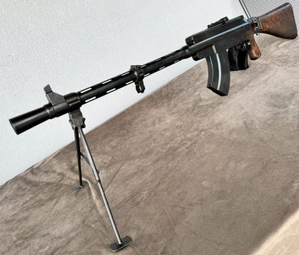 Raritní fiský druhoválečný kulomet Lahti-Saloranta M/26 (LS-26) předelaný na pušku samonabíjecí (kategorie A-I). Vyrobeno pouze cca 5 000 kusů! Super stav, nová česká zkušebna. Ke zbrani je jeden 20-ti ranný zásobník. (Případně druhý kus za 2.000,-) Ráže : 7,62x54R Cena : 42.000,-
