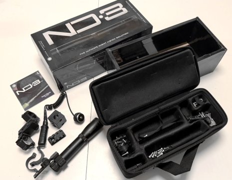 Laserová svítilna Laser Genetics ND3 Svítilna Laser Genetics ND3 určená k nasvícení objektů při pozorování na velké vzdálenosti. Základem je patentovaná technologie optického kolimátoru. To má za následek dobré vidění v noci při použití svítilny v kombinace s optickým pozorovacím přístrojem (dalekohledem, puškohledem, kamerou apod.). Pracovní vzdálenost pro dobré rozpoznání objektu se pohybuje kolem 250m. Svítilna je vyrobena z hliníku. Držák na dalekohled, držák na puškohled.
