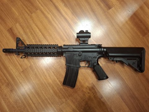 Zdravím, rád bych poslal dál moji m4 (cm.506) s kolimátorem T1, zvyšující montáží, dvoubodovým popruhem, dvěma točnými zásobníky a brýlemi na airsoft. Zbraň jsem měl doma jako záložní nebo na půjčování, ale na akci se nakonec dostala jen jednou a přijde mi škoda aby tu jenom ležela. Řekl bych, že je to ideální set pro začátečníka, ale zbraň je s jistotou super i pro pokročilejší hráče. Ke zbrani za 500Kč přidám i úplně novou baterku - 1300mAh. Cenu bych si představoval 2400Kč bez baterky.