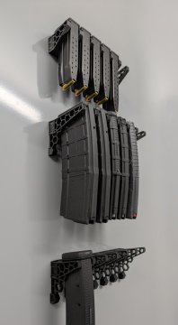 Prodám magnetické držáky na zásobníky: dvouřadé pistolové, AR15, EVO3. Držáky unesou naplněné zásobníky, pokud jsou přichyceny k plechu o tloušťce minimálně 2 mm. Jinak pouze prázdné. Modulární - lze jich vedle sebe naskládat libovolné množství. Orientačně: šířka držáku na 3 zásobníky je 110 mm. Cena je vždy za držák na 1 zásobník. • pistole: 150,- • EVO3: 170,- • AR15: 180,- + Doprava (zásilkovna, nebo balíkovna) Kontakt na e-mail, nebo WhatsApp.