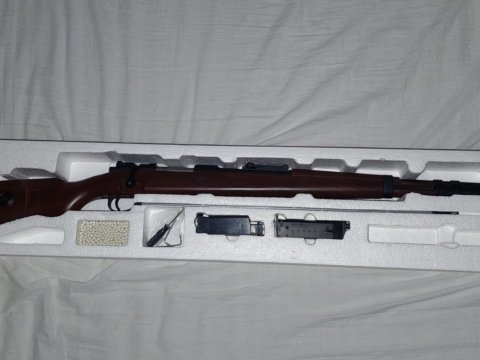 Zdravím, prodám airsoftovou pušku Mauser Karabiner 98 (Kar98k) z pravého dřeva, výrobce Snow Wolf. Téměř nepoužívaná, plně funkční. Cena 3 999 Kč. Manuální, střelba jednotlivě, výkon 410 FPS (125 m/s), dostřel cca 56 m, zásobník 25 kuliček (0,25 g). Délka 1110 mm, hmotnost 3300 g, kovové tělo, dřevěná pažba i předpažbí. Osobní předání mezi Kolínem a Prahou. Kašťák.
