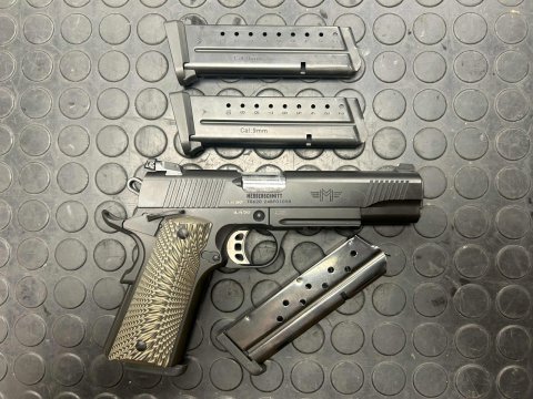Pistole samonabíjecí výrobce Messerschmitt, model 1911 v ráži 9 mm Luger. Ke zbrani jsou dva originál zásobníky, dva zásobníky Mag-Gar a originál přepravní kufřík. Zbraň má nástřel do 300 ran. Zbraň kategorie R3. Jedná se komisní prodej, platba možná pouze v hotovosti.