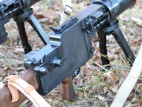 Kulomet MG 08/15. Prodám precizně vyrobenou repliku kulometu Mg08/15. Replika je zhotovena podle originálu se všemi detaily které na zbrani jsou. V ceně je kulomet dvojnožka,ponosový řemen.Kulomet je velice univerzální. Vhodný na období prví světové války první republiky a druhé světové války kdy byl běžně používán do roku 1943. Poté byl používán na obranu budov atd. Nakonec ho dostal volkssturm. Více informací tel. Nejedná se o zbraň je to pouze maketa.