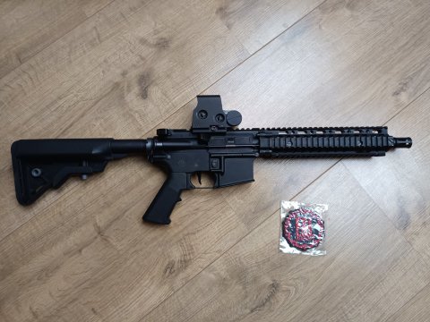Prodám Mk18 od E&L . Zbraň je kompletně ve full up . Výkon zbraně 2j s 0,25g . - CNC Retro Arms mechabox -Prowin hop up komora -Hlaven PDI 6,1mm -Hop guma Maple leaf -Procesorova jednotka Leviatan bluetooth -SHS kola 18:1 -Retro Arms píst (celokov ozubení) -CNC Retro Arms spoušť - Nová sestava vzduchotechniky -Vysokorychlostni motor SHS -Rychlo výměna pružiny ( zvládne nejsilnější pružiny na trhu ) Součásti zbraně je Eotech .