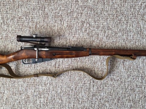 Puška je v dobrém stavu, rok výroby 1943. Hlaveň, závěr i nábojová schránka mají shodné výrobní číslo. Je přesná, ústí hlavně není odvrtané. Puškohled je nejspíš novovýroba — nemlží se a nástřel drží. Pušku jsem kdysi už takhle koupil.