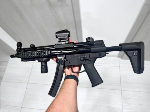 Prodám MP5 od POF ve skvělém stavu. Většinu svého času trávila v trezoru jako mazel. Vyměněná pažba, lower a přepínač pojistky za Magpul, předpažbí s RIS, montáž kolimátoru B&T, kolimátor vortex crossfire, grip, krytky na raily, kopie magpul QD a MS4 popruhu - velmi zdařilá, 2x zásobník na 30 ran, 1x zásobník na 15 ran, 1x spona na spojení dvou zásobníků, originální HK čištění, původní díly součástí Vše funkční, bez problému šlape, ještě udělá spoustu radosti. ZO a NP nutností.. Možná výměna