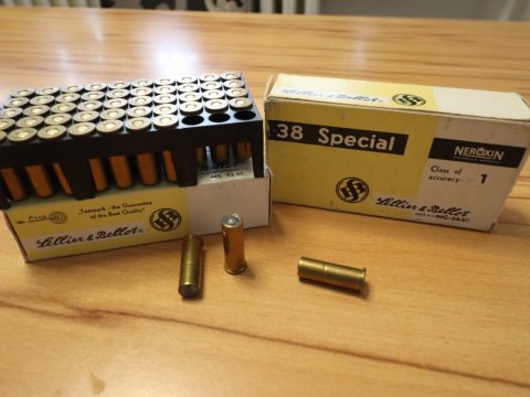Originál náboje Sellier & Bellot SB 38 Special Wad Cutter WC vyrobeno ještě v ČSSR. K dispozici 100ks. Nutné ZP/Zbrojní List. Cena 12kč/ks za celek, případně 15kč/ks při odběru 50ks. = Dodání: Praha 14 Hloubětín, Praha-Brno-Zlín 1x/měsíc: prosím o kontakt čím dřív, abych zboží vzal sebou, záloha předem na účet.