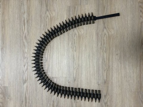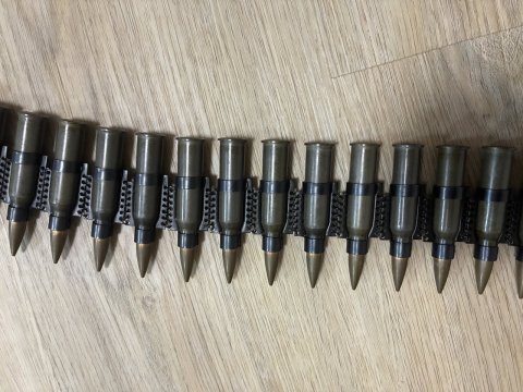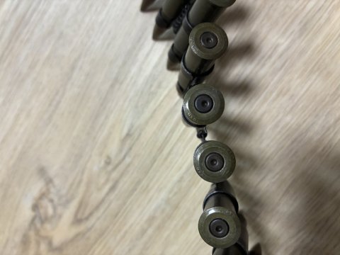 Prodám delaborovaný nábojový pás sestávající z 50ks nábojů. Náboje bez bližšího označení ráže. Dle mého se jedná o 7,62x54R. Na dně nábojnic značení ,,bxn". Preferuji osobní předání v Praze. Jiný způsob dopravy případně po domluvě.