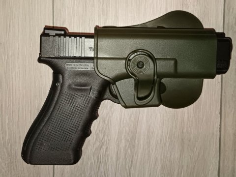 Nabízím k prodeji nové a nepoužité pouzdro, které je kompatibilní s GLOCK 17,19. Pouzdro je pro praváky. Uchycení za pásek, pistole v pouzdře výborně drží, uvolnění z pouzdra pomocí zatlačení na středové tlačítko. Zbraň není součástí prodeje, pouze pouzdro, na fotce je použito v pouzdře GLOCK 17. Mám k dispozici i pouzdro černé barvy viz poslední foto. Zasílám přes zasilkovnu, případně osobní odběr Pardubice.
