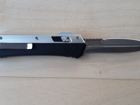 Prodám tento velice precizně zpracovaný, čelně vystřelovací nůž v dárkové kazetě. Jedná se o velice zdařilý klon nože Microtech Glycon Bayonet Bead Blast. Na čepeli nože je nápis Glock Perfection, takže určitě potěší příznivce pistolí této značky.