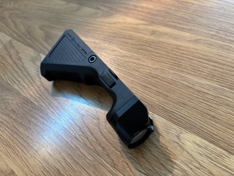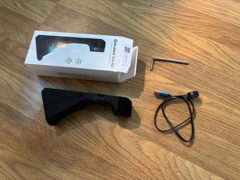 Olight Sigurd - přední rukojeť (angled grip) na RIS s integrovanou svítilnou. Maximální výkon 1450lm, úsporný režim 290lm, oboustranný spínač, integrovaný akumulátor s magnetickou USB nabíječkou. Grip plastový, tělo svítilny hliníkové, barva černá. Nasvíceno prakticky nic, nastříleno pár set ran na EVO 3. Nesedlo mi to. Cena 2000, při rychlém jednání možná dohoda. Předání Praha nebo pošlu Zásilkovnou.