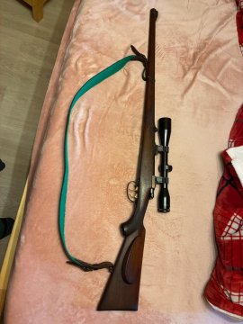 Opakovací kulovnice, celopažba, 8x57JS. Známa i jako lesnické Zko. K tomu optika meopta 6x42, řemen, náboje