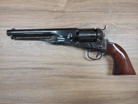 Legendární perkusní revolver Colt 1861 Navy od italského výrobce Uberti. Jedná se o komisní prodej. Tento černoprachý revolver v ráži .36 je v novém, nestříleném stavu. Zbraň má ocelový lučík a rám doplněný o ořechové střenky. Šestiranný válec je ozdobený klasickou rytinou. Modřená hlaveň o délce 7,5" (190,5 mm) má levotočivý vývrt se stoupáním drážek 1:32 LH. Zbraň kategorie C (Zbrojní průkaz bez nákupního povolení).