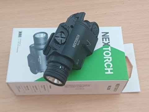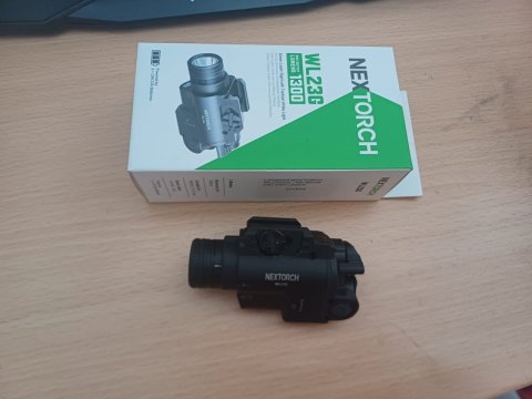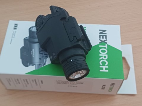LED svítilna NexTorch WL23G / zelený laser. Dokáže podat výkon až o úctyhodné síle 1300. Dosvit světelného kužele je celých 180 metrů, pouze nasazena na zbraň na zkoušku, spínač byl "Zaoblen" aby se vešla blíže k lučíku. P.C. 4200Kč. Při platbě předem na účet je zásilkovna v ceně.
