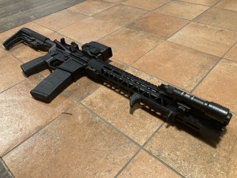 Prodám AR15 ZRODelta RANGE READY LVOA. Skoro nová, jen lehce zastřílená Hlaveň za studena kovaná 14,58´´ stoupání 1:8 s nitridovaným vývrtem. Komora .223 Wylde (pro .223 REM i 5,56x45. Plně oboustrané ovládací prvky zbraně. Kovová mechanická mířidla. KOLIMÁTOR Vortex Razor AMH UH1 gen2. Zbraňová LED svítilna ProTac Rail mount2. 4x zásobník 30 ran PMAG M3. Přepravní taška. Magpul pažbička MOE-K2.