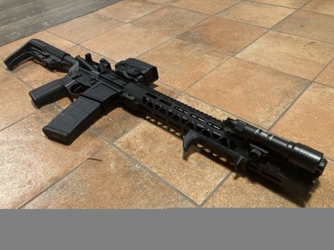 Prodám AR15 ZRODelta RANGE READY LVOA. Skoro nová, jen lehce zastřílená Hlaveň za studena kovaná 14,58´´ stoupání 1:8 s nitridovaným vývrtem. Komora .223 Wylde (pro .223 REM i 5,56x45. Plně oboustrané ovládací prvky zbraně. Kovová mechanická mířidla. KOLIMÁTOR Vortex Razor AMH UH1 gen2. Zbraňová LED svítilna ProTac Rail mount2. 4x zásobník 30 ran PMAG M3. Přepravní taška. Magpul pažbička MOE-K2