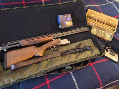 Prodám brokovnici Baikal IŽ-27EM-1C, 12/76 s příslušenstvím, tzn. čištění, řemen přes rameno, 5 ks zahrdlení, asi 20 skeetových patron, brašnu na zbraň - viz foto. Zbraň málo střílená, gumová patka, nepoškozená, neodřená, nepoškrábaná, ve výborném stavu.