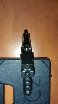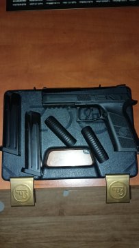 Prodám málo střílenou (do 500 nábojů), téměř nenošenou CZ P-09 ráže 9x19 koupenou 12/2015. Zbraň je ve výborném stavu čístěná po každé střelbě. Ke zbrani náleží kufřík, dva zásobníky s kapacitou 19 nábojů, další dva výměnné hřbety rámu a veškerá původní dokumentace. Nutné NP a platný ZP. Přepis zbraně v den prodeje (úřední dny na územním odboru v Bruntále).