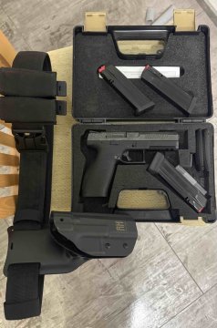 Prodám CZ P-10F v ráži 9mm. K pistoli přidávám: - opasek - pouzdro RH holster na zbraň - dvě sunky na zásobníky. - 4 zásobníky z toho 3 standardní a 1 s větší botkou. Zbraň má nastříleno asi 1500. Na zbrani ještě lepší spoušť, tritiová mířidla a duralová zadní destička.