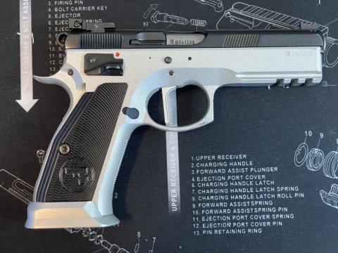 Prodám CZ SP-01 Shadow DUAL TONE 9mm SA spoušť. Světlovodná mířidla Zendl, rovný SA kohout, hliníkové střenky, trychtýř, vymezené vůle, nerezová tyčka vratné pružiny a buffer, tři zásobníky. Původní díly a kufřík. Nastříleno cca 2500 střel. Leží v trezoru dlouho bez využití. Po dohodě možné i jiné regiony HK, Pardubice, Liberec,MB, Ostrava,OL, Zlín. Nutný ZP a NP