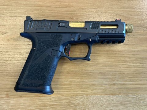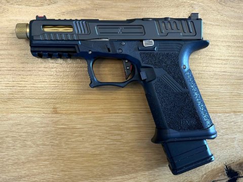 Prodám pistoli Faxon FX-19 Hellfire v ráži 9 mm Luger. Délka hlavně 4,5" (114 mm), povrchová úprava DLC, základna pro montáž kolimátoru Trijicon RMR nebo Holosun 507C, spoušť Overwatch Precision, zvětšená zásobníková šachta. Krásné zpracování a zakázková povrchová úprava hlavně. V ceně 1 zásobník s botkou na 20 ran, originální kufr, mířidla TTI se světlovodnou muškou a původní vysoká co-witness mířidla. Pořizovací cena nové zbraně cca 46 tis. Kč. Po dohodě možný prodej na trase Liberec-Praha.
