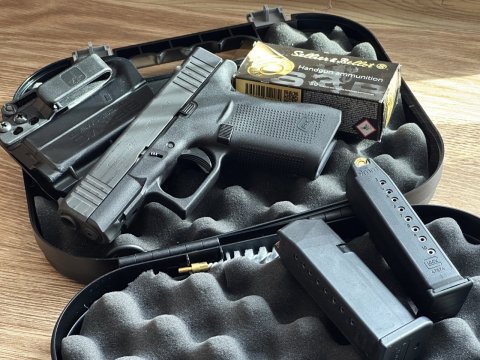 Jedná se o téměř nestřílený kousek, pouze nošený (3x střelnice, nástřel do 200 ran) 9 mm Luger (9x19), dva orig. zásobníky 10 ran. Komplet balení, kupován 7/2024 v Kentaur zbraně Praha - jsem první majitel. Stříleno pouze fabrické střelivo Sellier & Bellot! Zbraň je v perfektním technickém stavu, pouze drobná kosmetika (otěry) na závěru zbraně od pouzdra. Ke zbrani přidám vnitřní pouzdro BRAVO - pravák. Zbraň kat. "B", ZP + NP (nákupní povolení) beru jako samozřejmost. Prosím o slušné jednání.