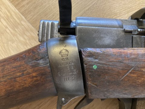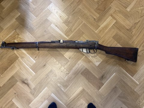 Prodám pušku Lee Enfield III* z roku 1936 od zbrojovky B.S.A.co. Afghánský kontrakt. Puška vhodná pro sběratele. V hlavni je vidět vývrt. Jinak je hlaven matná a dražky polomatné . K pušce mám tři krabičky 303 british (cca 60 nábojů).