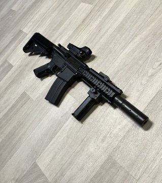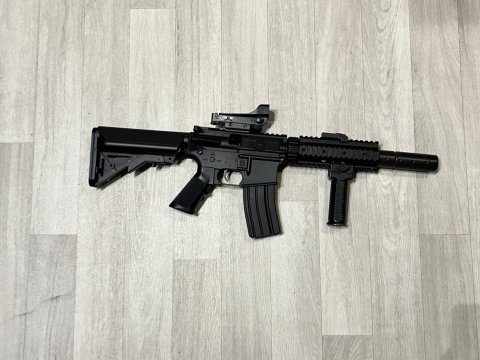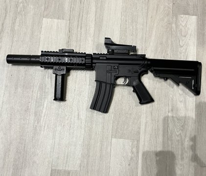 prodám funkční airsoftku M4 RIS CQB (CM.513) od CYMA — ideál na CQB nebo do výbavy na hřiště. Zbraň byla používána, funguje bez problémů, připravená ke hře je jako nová. Hlavní parametry: • Výrobce: CYMA.  • Typ: Elektrická dlouhá AEG, M4 RIS CQB s tlumičem (model CM.513).  • Hop-up: plast, regulovatelný. • Mechabox: V2 (kovová slitina). • Ozubená kola: kovová slitina, převod