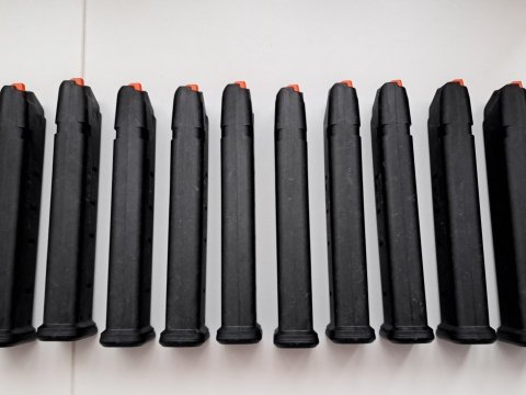 9 mm Luger. 10 kusů zásobníků. Cena 5000,- (PC 7000,-). Dva z nich byly jednou na kryté střelnici, ostatní nepoužité.