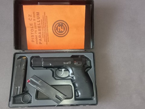 Prodám pistoli ČZ 75 Para 9mm, Luger. Ještě výroba Československo.Dědictví, nestřílená , max. 200 ran, velice zachovalá, součástí 2x zásobník, originální kufr, pouzdro na nošení,návod na použití a čištění. ZP podmínkou+ nákupní povolení. Cena 15000 Kč. Telefon 777095100. Email suttner5@seznam.cz