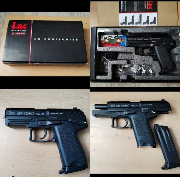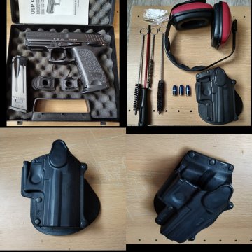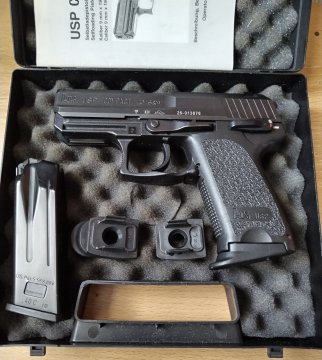 Prodám Heckler & Koch USP COMPACT, 40 S&W, SA,DA velmi dobrý stav (max.1000 ran). Orig. kufřík, manuál, 2 zásobníky (10), 4 botky (2 rozšířené-zlepšuje úchop), pouzdro FOBUS s pádlem, 3 školní náboje, čištění, sluchátka. Naprosto spolehlivá (1 zádržka), „polyká“ cokoliv,nevýhoda-dražší střelivo-zato vynikající účinnost. K tomu pro zábavuí, ev. cvičení USP COMPACT AirSoft ,plnění CO2 z láhve, ovládání a funkce jako ostrá zbraň. Cena za vše, prodej ze zdravotních důvodů. Pouze držiteli ZP a NP.