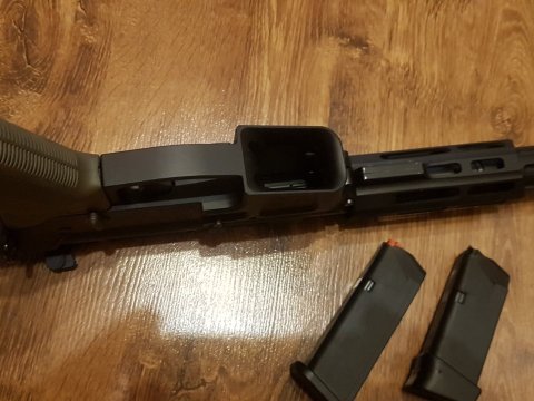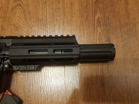 Prodám velmi krátkou pušku FMP9 hlaveň 5" ráže 9mm Luger. Pažba + rukojeť Magpul ODG. Lineární kompenzátor. Dva zásobníky glock na 10 a 15 ran. Perfektní stav. Jako nová. Vystřeleno 50ran. Přešel jsem na jiné zbraně tak nevyužiji. Výborný soustřel.