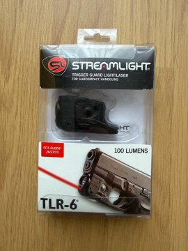 Prodám svítilnu Streamlight TLR-6 s červeným laserem na Glock 26/27/33/43 .. Krabička, imbus, baterky Cena 4000,- Kč. Komplet balení.