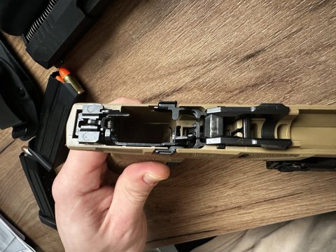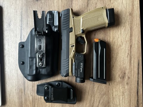 s tritiovými mířidly. Zbraň má cca 500 výstřelů, minimální/zanedbatelné opotřebení + vnitřní kydexové pouzdro RH, vnitřní kydexové pouzdro pro zásobník (bez svítilny, ta mi zůstává :-))