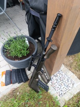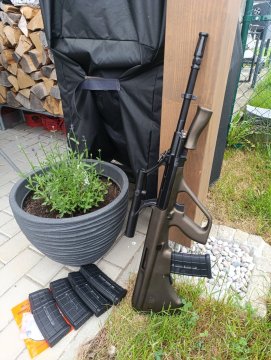 Prodám samonabíjecí pušku Steyr AUG v ráži 5.56. Zbraň kompletně sčíslovaná, hlaveň zrcadlo, optika krásně čistá. Úplně nový povrch od Lórant Cerakote. Přidám 4x zásobník, manuál a originální klíč na seřízení optiky.