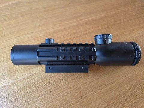 Prodám malorážkový puškohled german sports guns 4x28 s podsvícenou záměrnou osnovou (7 stupňů) na picatinny lištu. Demontovaný z bazarové zbraně, bez poškození jen na krytkách točítek jsou ošoupané hrany.